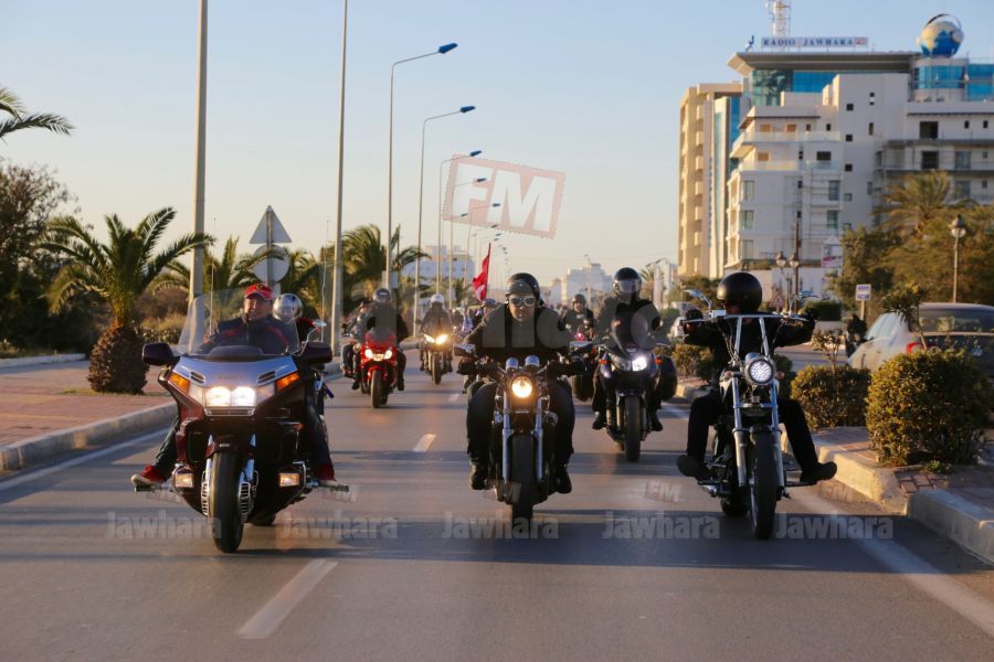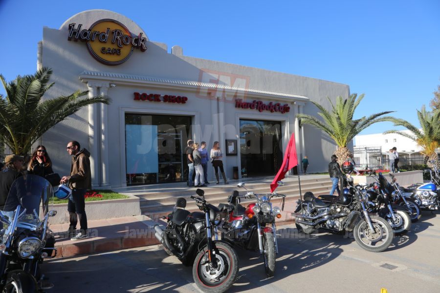 Rassemblement de motards devant Hard Rock Café à Sousse
