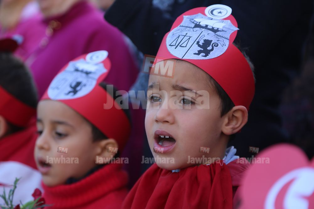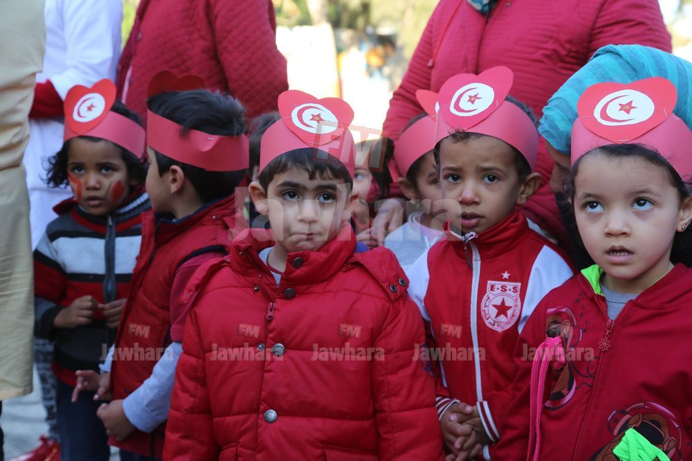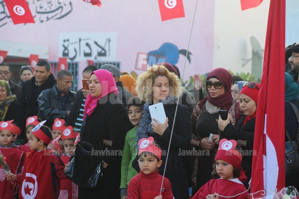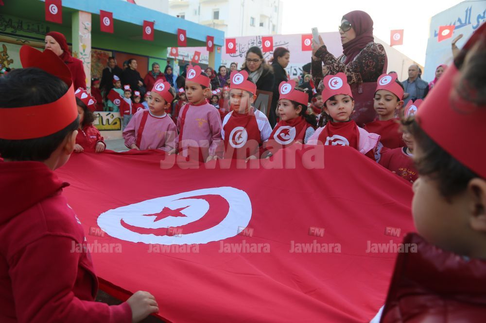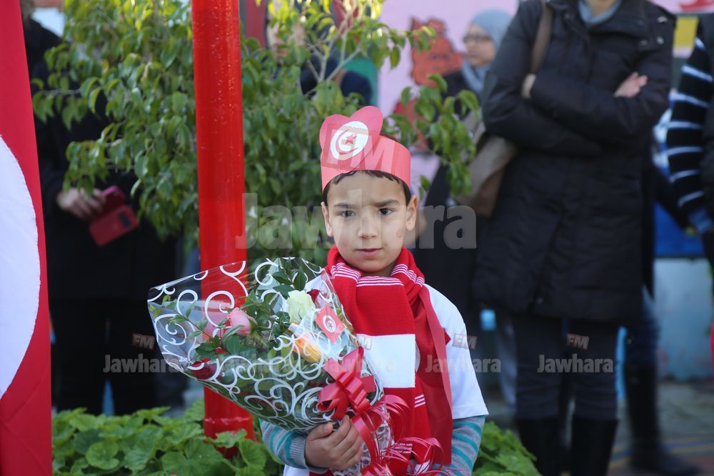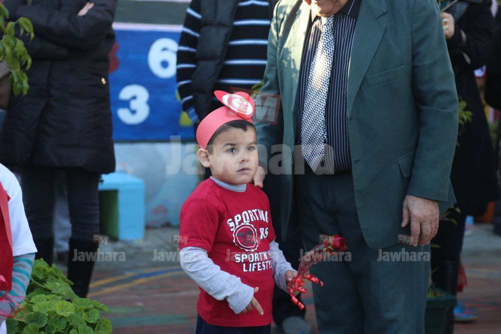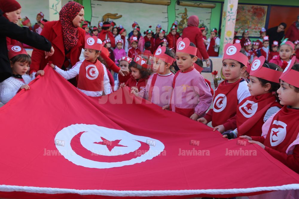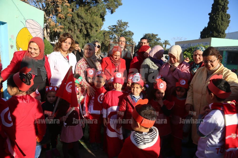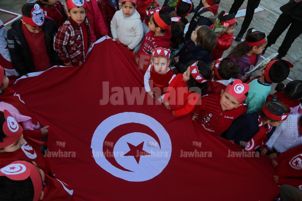 Salut du drapeau dans un jardin d'enfants à Bouhsina avec les forces de police et de la garde nationale