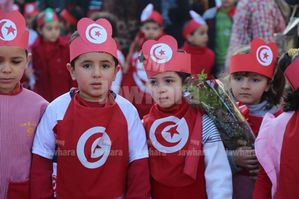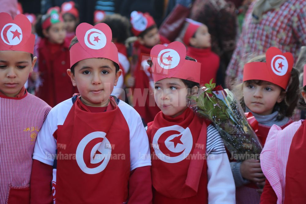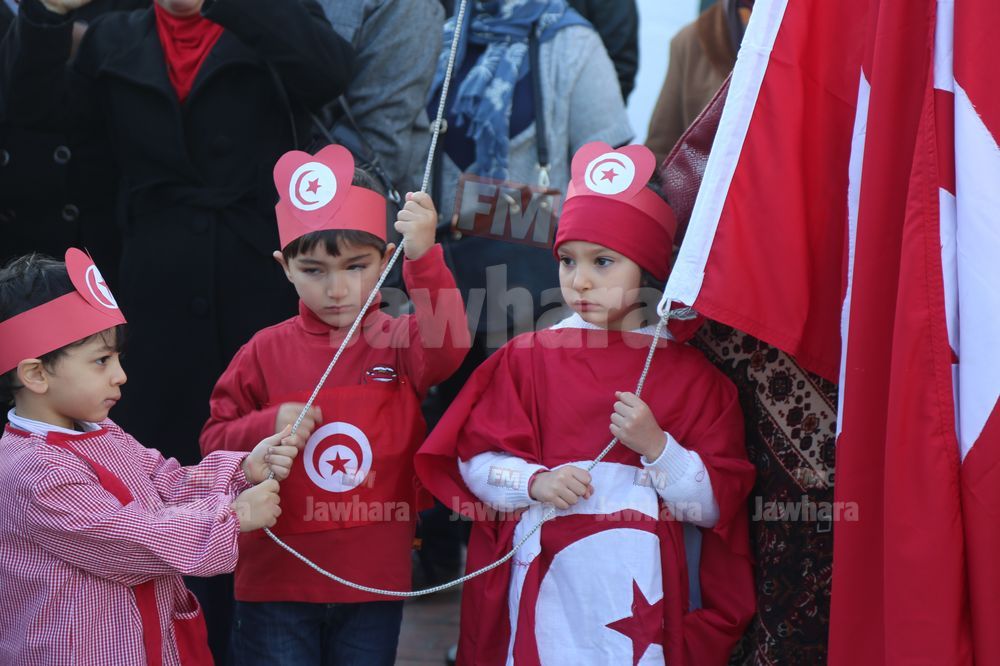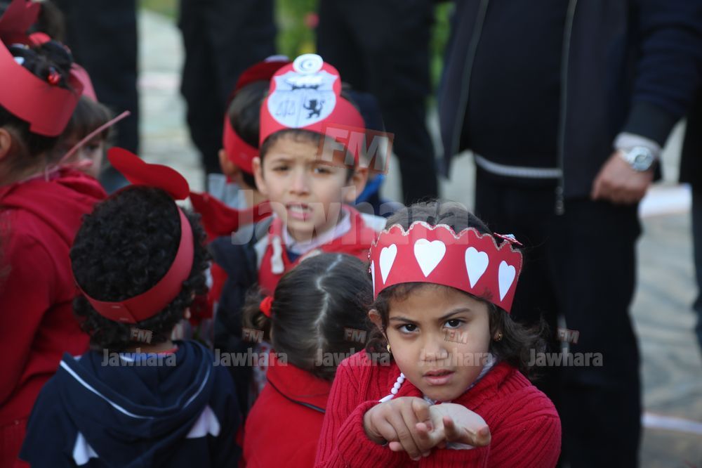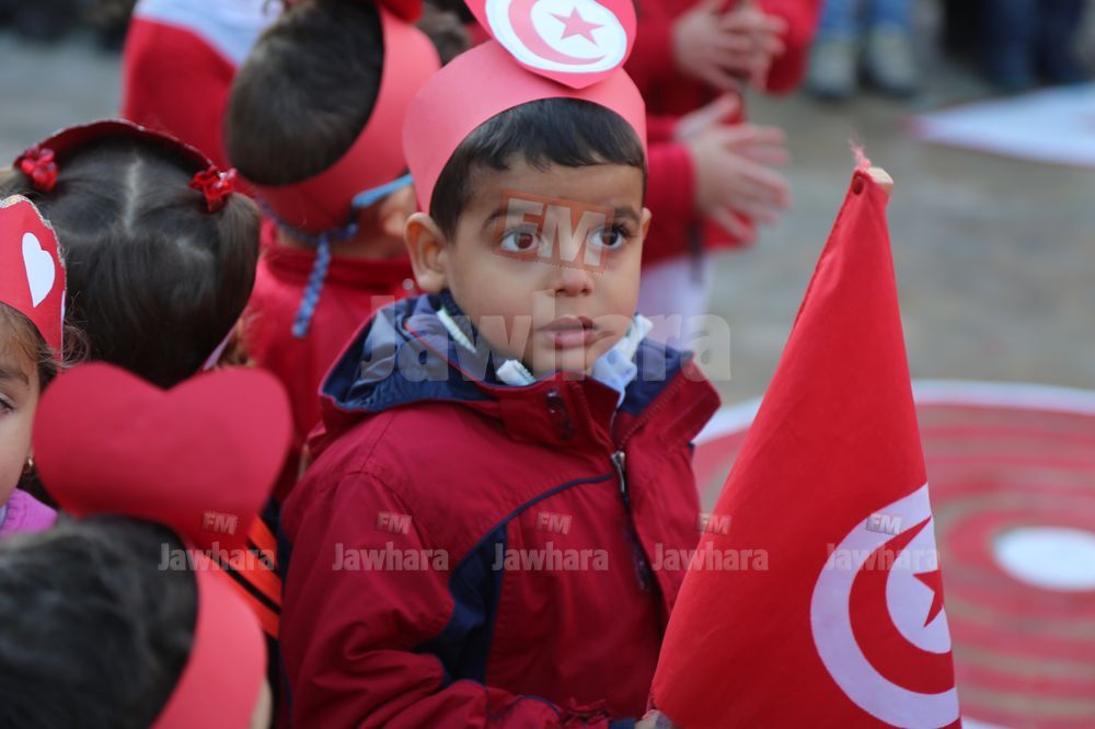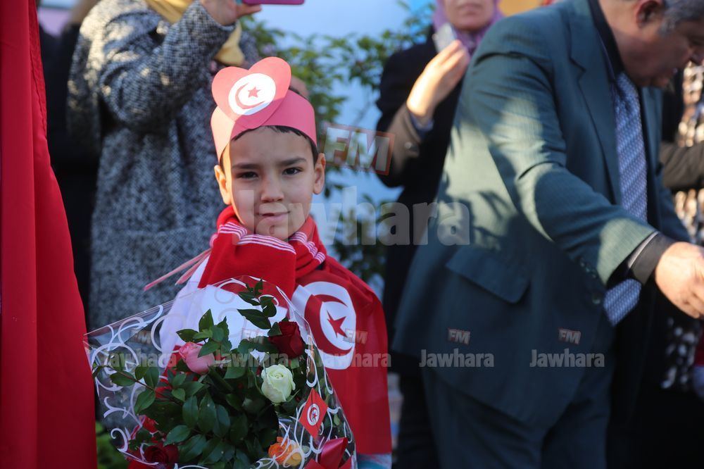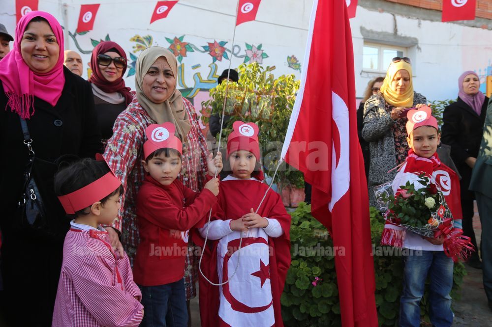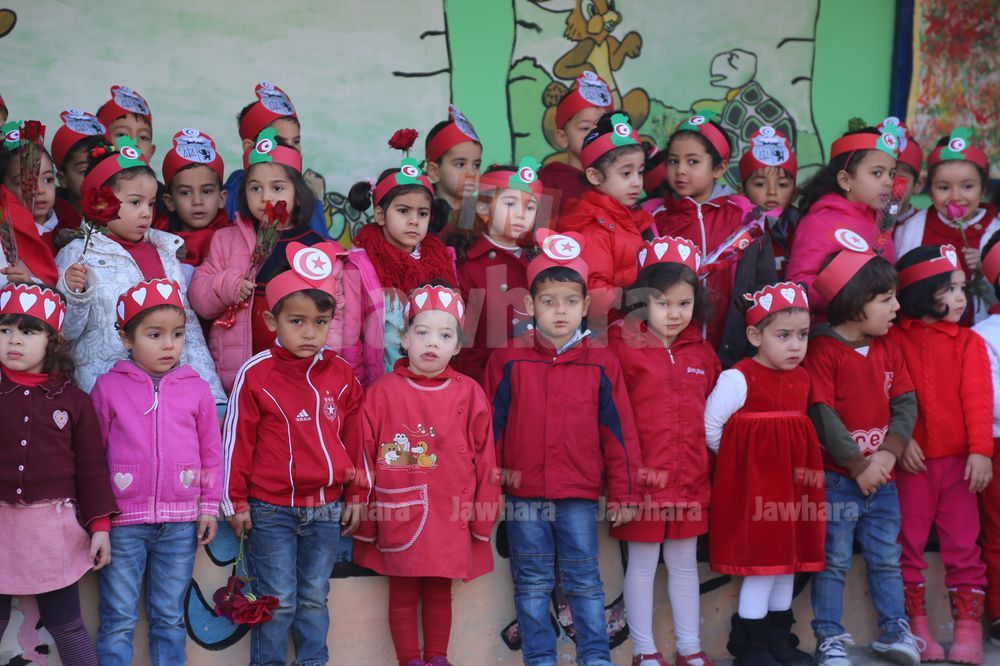 Salut du drapeau dans un jardin d'enfants à Bouhsina avec les forces de police et de la garde nationale