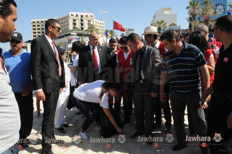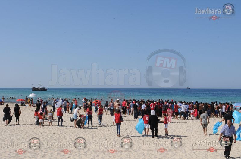 Plage de Boujaâfar à Sousse : Amel Karboul participe à la campagne de propreté initiée par l'Étoile Sportive du Sahel